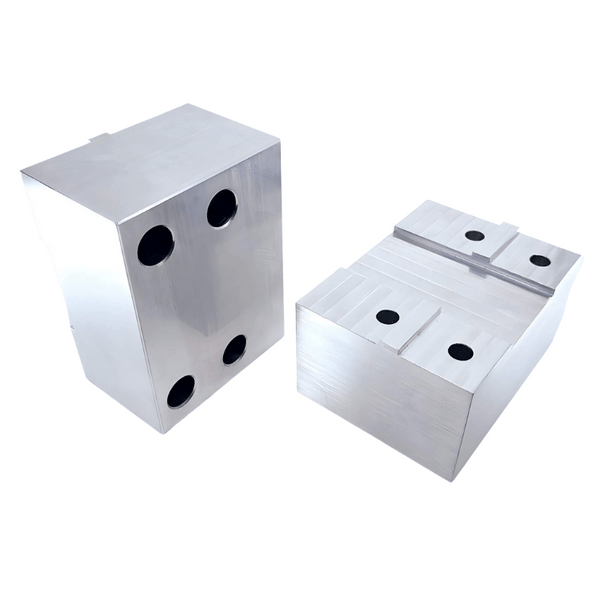 Get softjaws for your 100mm Self-Centering Pneumatic Air Vise. Perfect for robot or second-op's for your production.