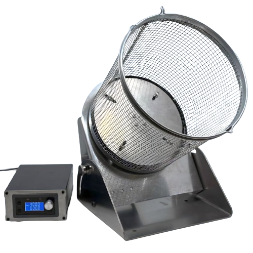 The Standard TumbleBlast Automatic Tumble Basket is designed primarily for bead-blasting and non-abrasives. Its smaller basket allows it to fit into virtually every free-standing blast cabinet and some (but not all) tabletop cabinets. For more industrial applications, we offer the Giant TumbleBlast Automatic Tumble Basket that features a much larger and thicker all-stainless steel basket, a much more powerful motor, and a larger overall processing capacity. Replacement baskets and parts are available for both models.