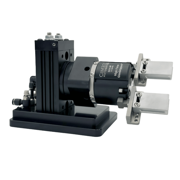 Unlike other part-flipping solutions that you must piece together yourself, the QuickFlip180™ Pneumatic Flip Station comes as a complete kit ready to help you automate. The system consists of an anodized/powder-coated base, a rotary actuator, and a GimGripper with both standard and specialty Gripper Fingers. The GimGripper comes packaged in our signature Blue Hardcase.